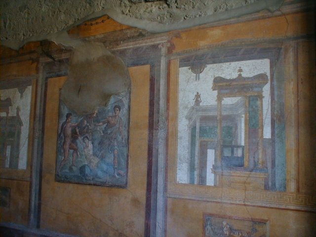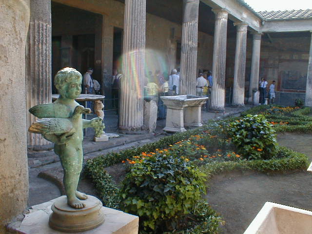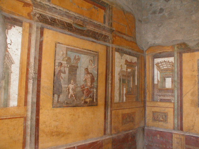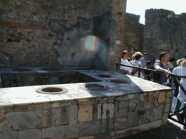 Over the past 250 years, roughly 65% of the city has been excavated, mostly the public areas and the most interesting parts. The forum, the amphitheater, the Grande Palestra, the port (now almost a mile inland), and the commercial areas have all been unearthed and are open to the public. We saw little more than one-fourth of the city. We also saw where Italians got the inspiration for their narrow streets. Most is as it was, simply uncovered, unreconstructed. But those buildings, especially the more opulent homes, which have seen some degree of restoration imposed upon them, are the most interesting. We also see rebuilt the ever-present Roman baths, a corner bar, a mill, a whorehouse, a theater, a military garrison. We see Greek architecture and Roman art - eternal frescoes, rich, elaborate, skilled, decorative, erotic, sometimes even obscene. We see what was once a wealthy, vibrant, fairly large and fairly average, Roman mercantile community. Pompeii does not disappoint.